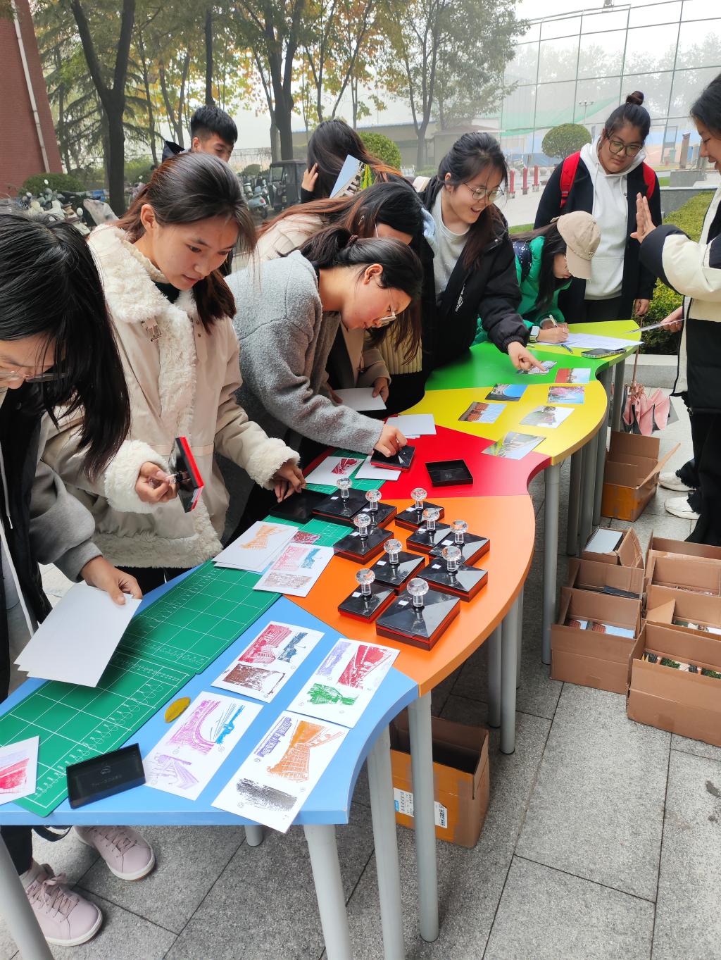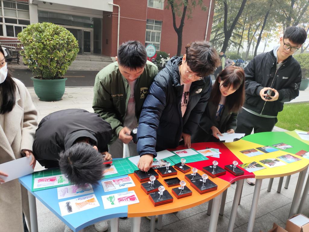 活动现场,学生们将领取由公共艺术教育中心发放的校园风景卡片,按指定路线在图文楼与综合楼之间的道路中巡游,通过集章完成探索任务,感受体院风景的独特之美。