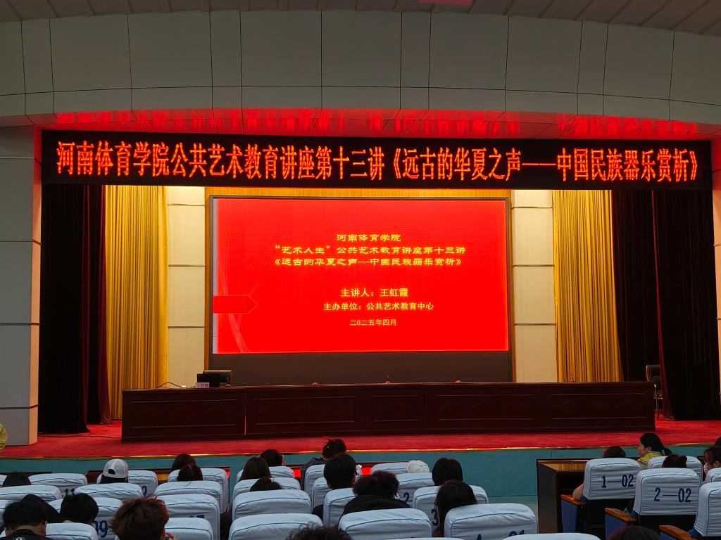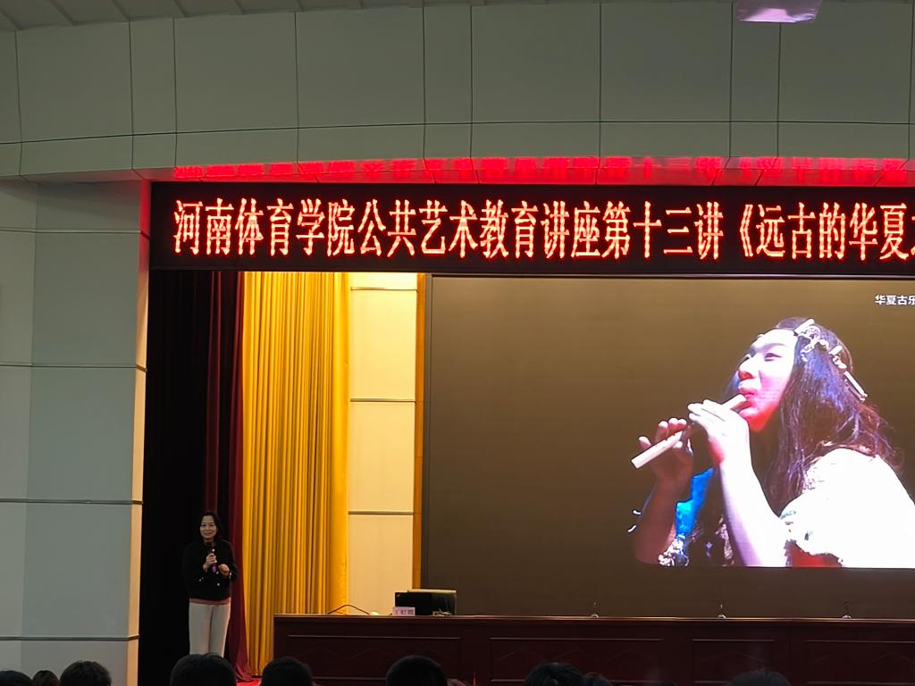 2025年4月1日晚18:30,河南体育学院“艺术人生”公共艺术教育讲座第十三讲——《远古的华夏之声——中国民族器乐赏析》在学术报告厅顺利举行。本次讲座由公共艺术教育中心主办,旨在提升学生审美与艺术修养,丰富校园文化生活,吸引了各系共计420名学生参与。
