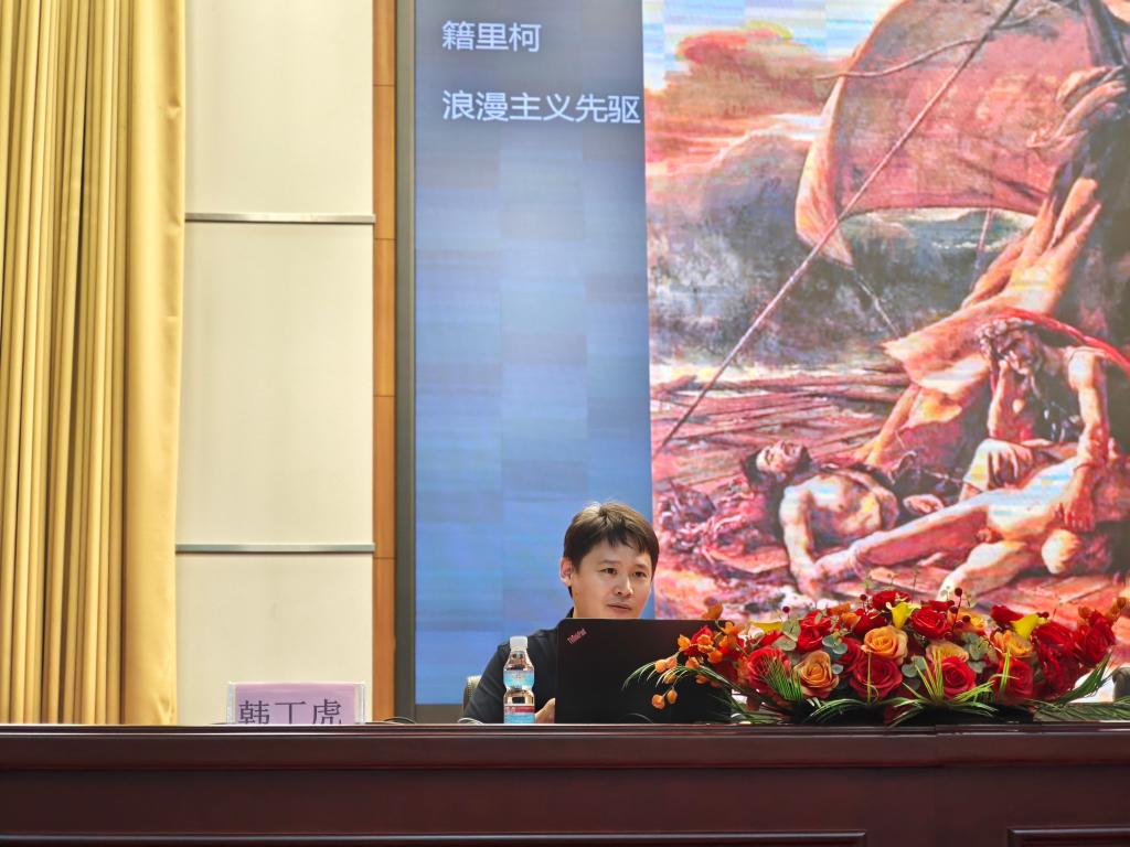 本次讲座由郑州大学美术学院副教授、油画系副主任韩丁虎主讲。韩丁虎博士为中国美术家协会会员,曾赴莫斯科苏里科夫美术学院公派访学,兼具深厚学术功底与丰富实践经验。讲座中,他以列宾经典作品《伏尔加河上的纤夫》为切入点,解析画作中纤夫的人物神态、色彩运用与时代背景,带学生感受艺术作品的震撼力量;通过经典画作赏析,让抽象的美术史变得生动可感。